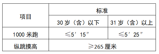3.参加体能测试考生年龄计算截止到体能测试当天。即2026年2月3日进行体能测试的,1995年2月3日(含)之前出生的考生执行“31岁以上”测试标准 ;2026年2月4日进行体能测试的,1995年2月4日(含)之前出生的考生执行“31岁以上”测试标准 。(出生日期以身份证为准)