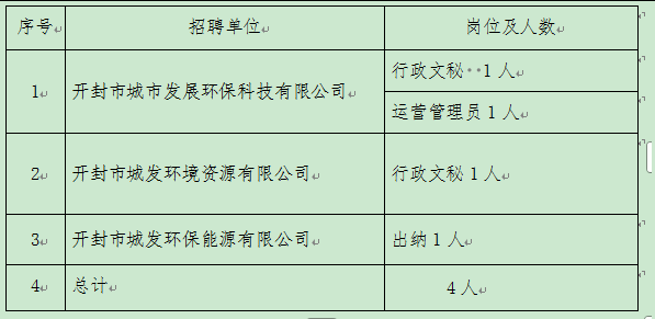 根据工作需要,开封市城市发展集团有限公司现委托开封市中业人力资源有限公司面向社会招聘劳务派遣工作人员 4 人。