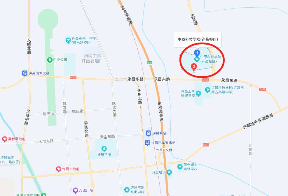 (二十一)中原科技学院许昌校区一得楼考点、行远楼考点和立业楼北楼考点(地址:建安区永昌东路266号)